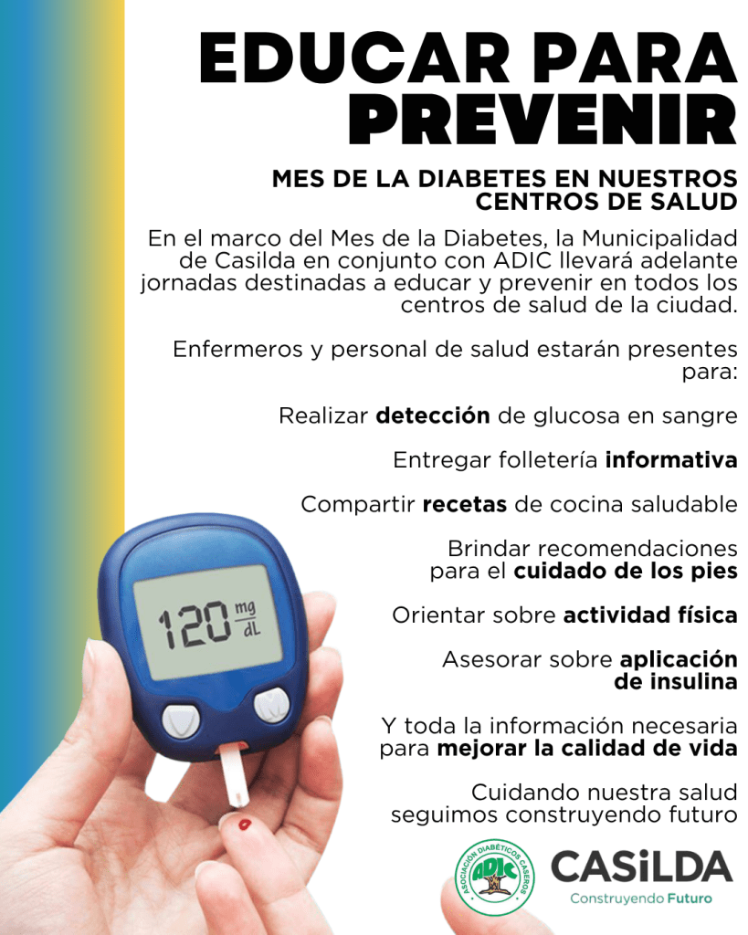 La Municipalidad de Casilda informa que, en el marco del Mes de la Diabetes, continúan desarrollándose diversas acciones de promoción y prevención en los Centros de Atención Primaria de la Salud, con el acompañamiento de ADIC (Asociación de Diabéticos Caseros).