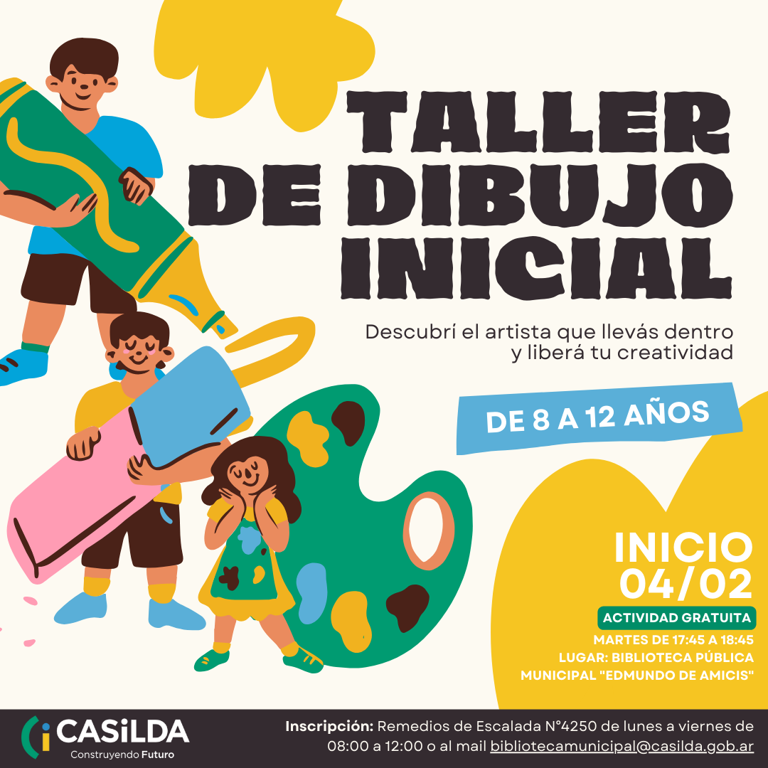 La Municipalidad de Casilda, a través de la Biblioteca Pública Municipal «Edmundo de Amicis», te invita a participar de los nuevos Talleres de Dibujo diseñados para chicos y chicas de diferentes edades. Cada taller es gratuito y ofrece un espacio único para desarrollar la creatividad y explorar el mundo del dibujo.