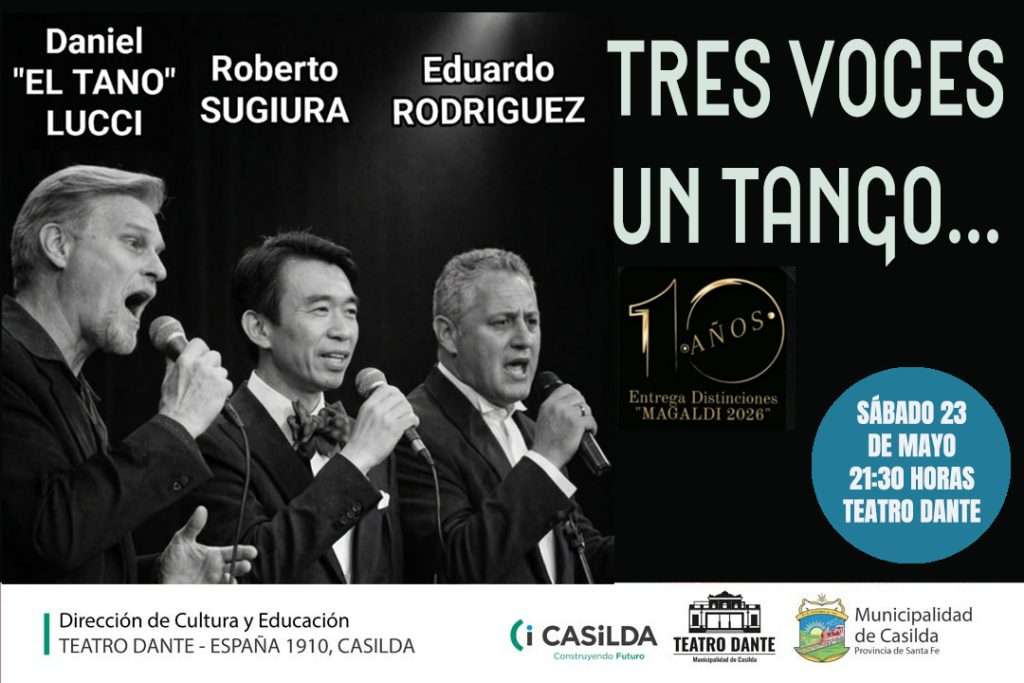 Comenzamos a festejarlo con un intercambio cultural internacional. Una noche con lo mejor del tango. Regresa a Casilda, Roberto Sugiura, el máximo exponente del tango en Japón. El tango es un lenguaje universal que conecta a personas de culturas diferentes. En el caso de Japón y Argentina, dos países con historias y tradiciones muy distintas, el tango se convierte en un puente que une sus emociones y pasiones. Lo acompañaran dos «Magaldi de Oro», de nuestra ciudad Daniel «El Tano» Lucci y de San Nicolas Eduardo Rodríguez, junto a parejas de baile. Sugiura, visito Casilda en el 2023 donde recibió el «Magaldi de Platino a su trayectoria».