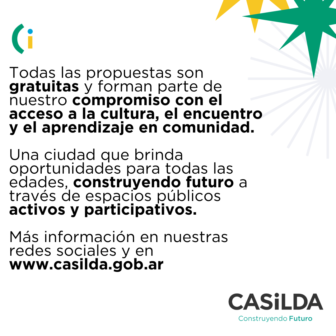 Cada actividad esta pensada para promover el acceso a la cultura y disfrutar en comunidad, con espacios públicos abiertos y activos. Porque también construimos futuro cuando generamos oportunidades para compartir, aprender y disfrutar.