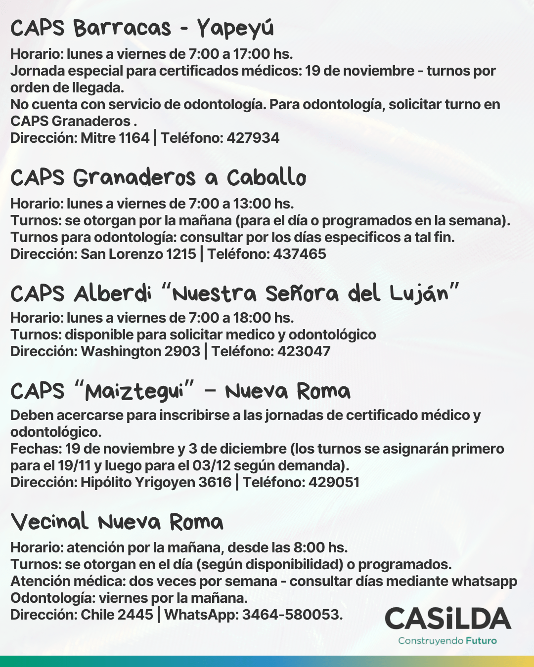 📍 Buenos Aires 2860, de 9:00 a 12:00 hs